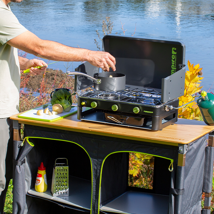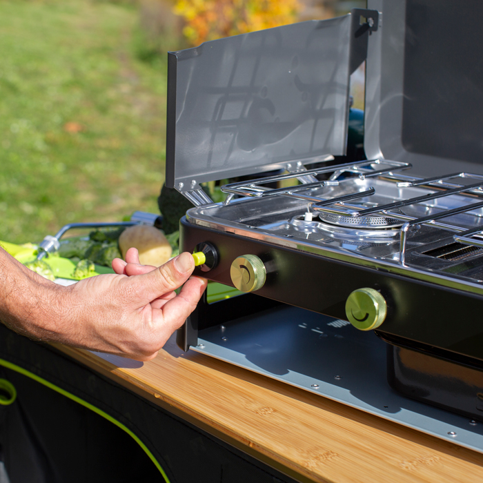 2 x high powered burners (12,200 BTU) get campsite meals on the table faster.
