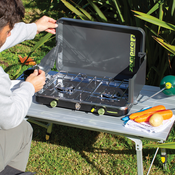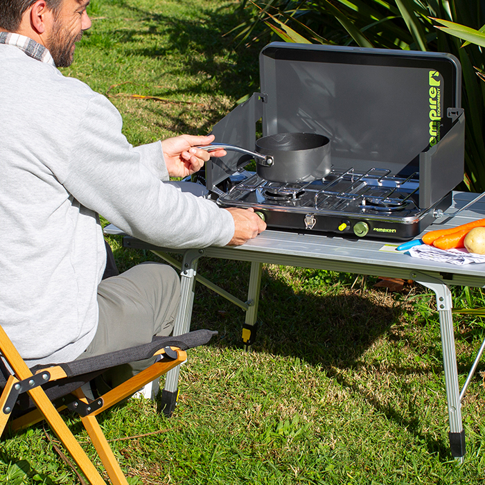 2 x high powered burners (12,200 BTU) get campsite meals on the table faster.