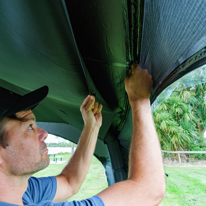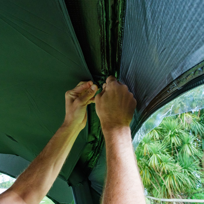Easily attaches to the internal roof with simple clip and toggle fasteners.