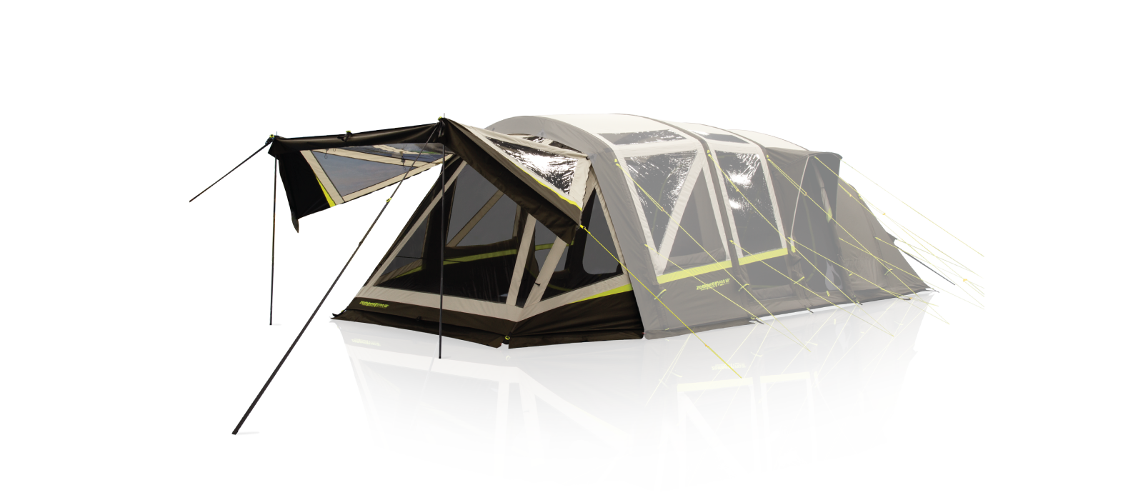 Creates a larger covered space at the front of your air tent for increased shelter and shade.