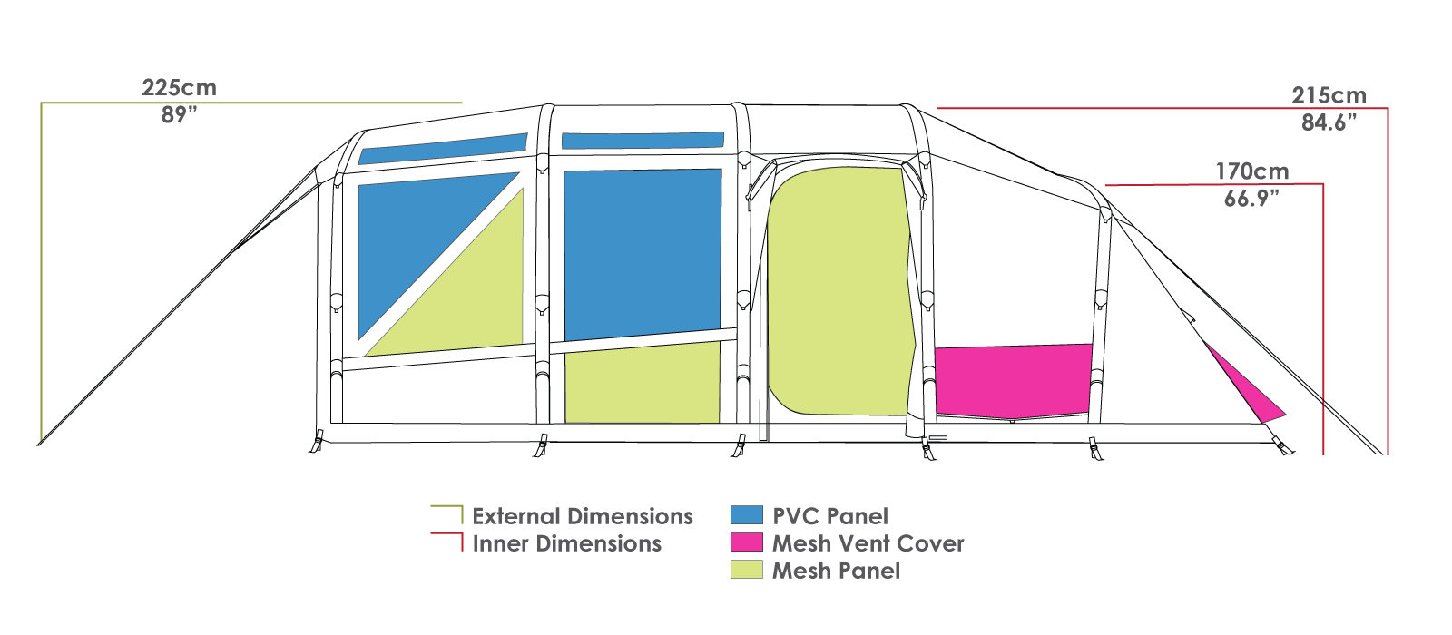 Allows the entire tent, including the awning, to be inflated from one point speeding up the process (which is ideal when it’s raining!) and increases stability.