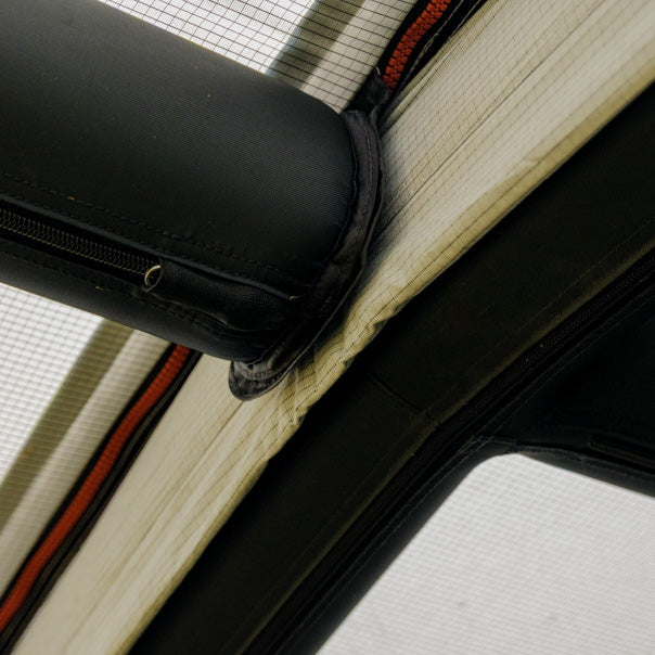 - Sunrooms (Canvas Only) - a 3-piece wall set, including floor which transforms your canvas tent awning area into another protected room.