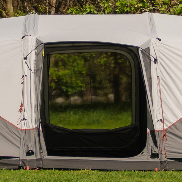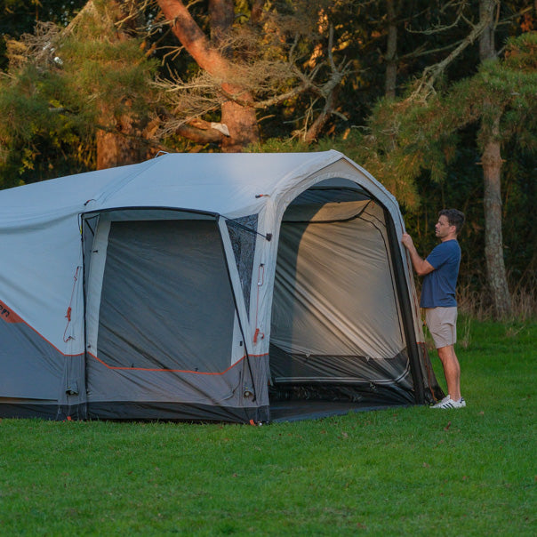 • It is important that lower vents are opened at all times to reduce condensation. During humid or damp conditions, it is recommended that the waterproof door covers are opened to expose the mesh layer, enabling additional airflow throughout your tent.